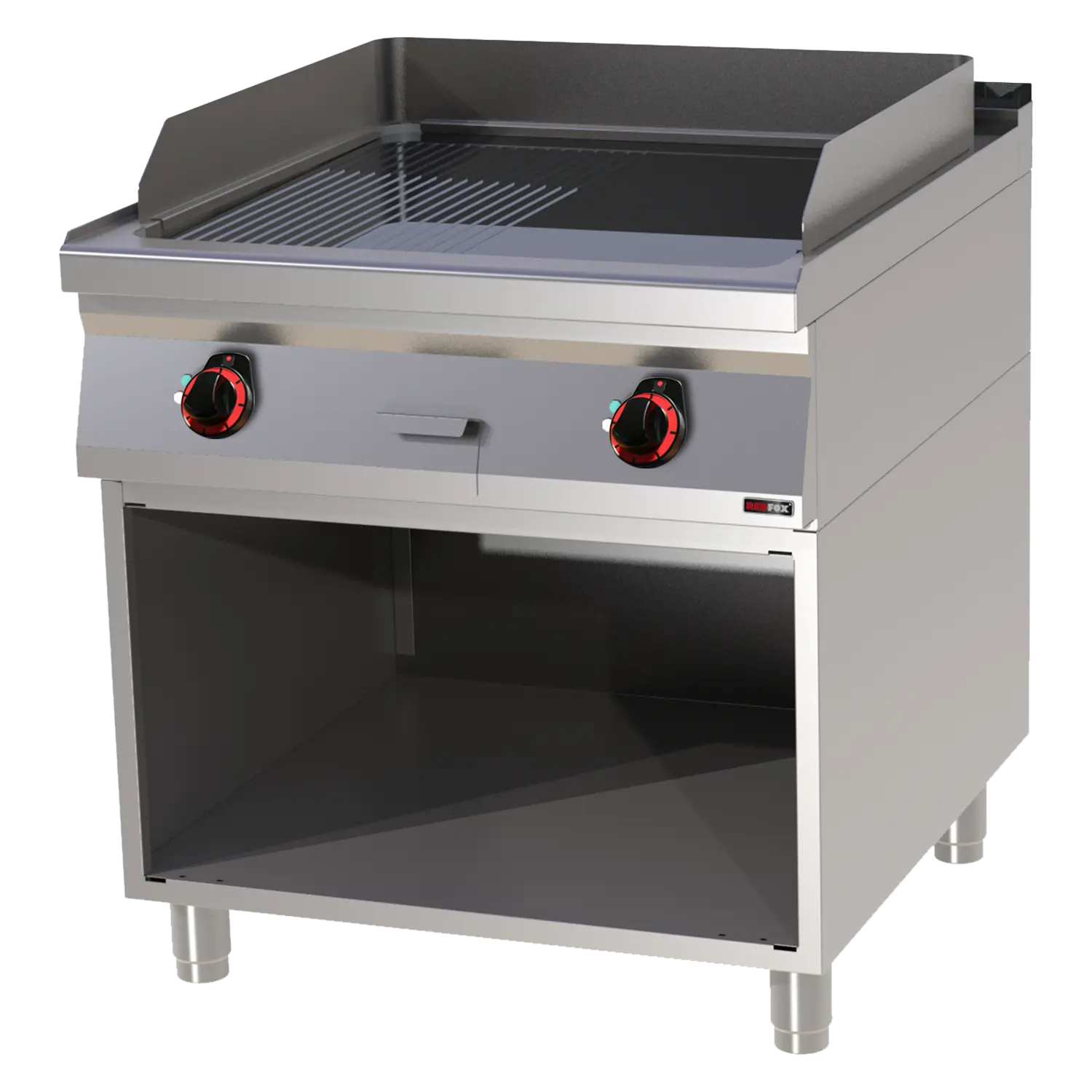 Fry-top griddle plate 71x65 electric chromed combined on open cabinet | REDFOX - FTHRC 90/80 E
