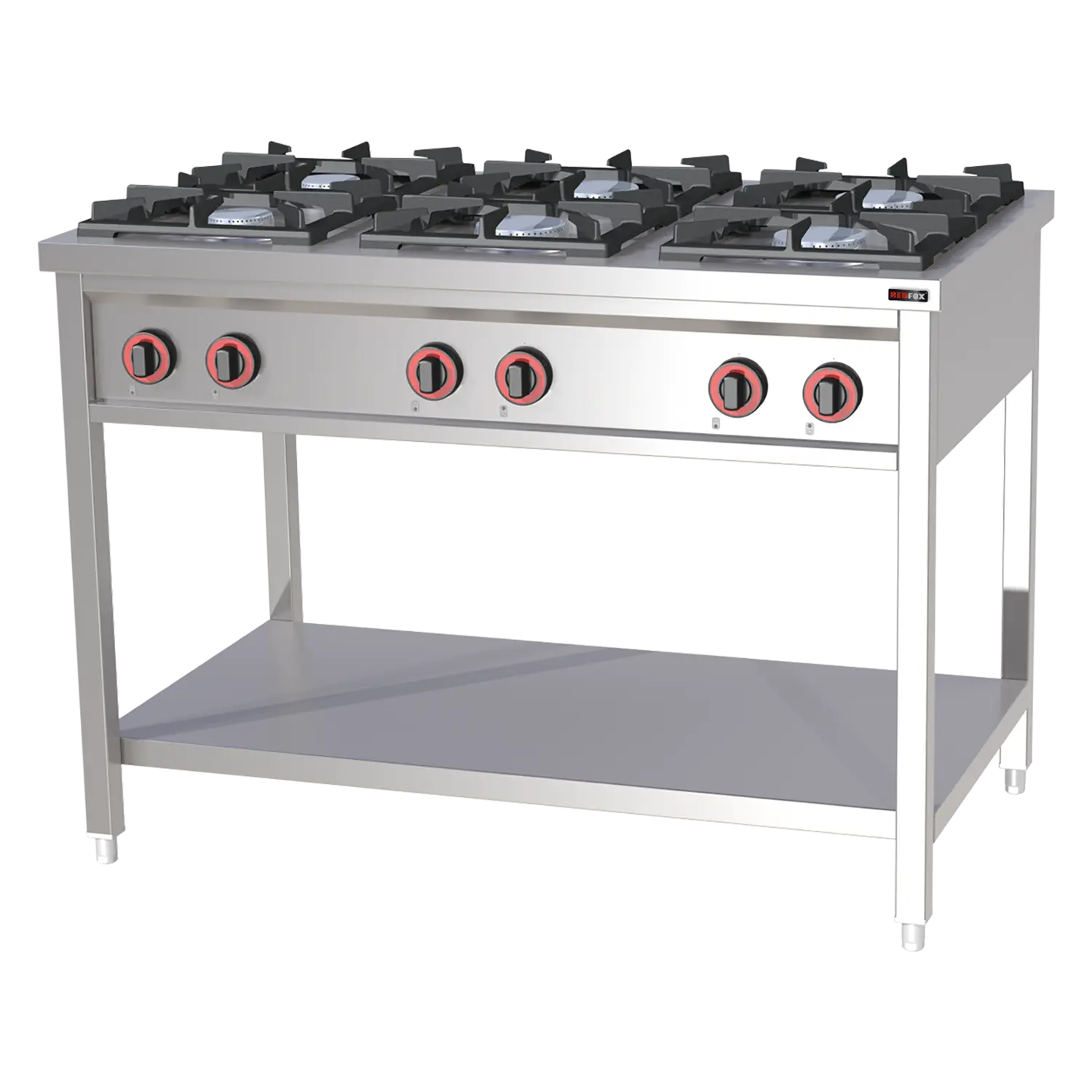 Cooking range gas 6x burner on open cabinet | REDFOX - SPF 120 G